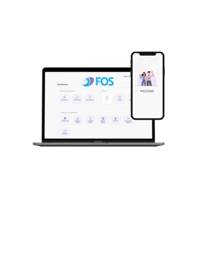 Una vez que usted se suscribe a FOS tendrá acceso al sistema web privado para su empresa. Desde ahí usted nos da la información para registrar sus apps, luego configura su empresa y las personas que prestan servicios, registra sus clientes y sus asuntos de trabajo y los invita a descargar sus apps.